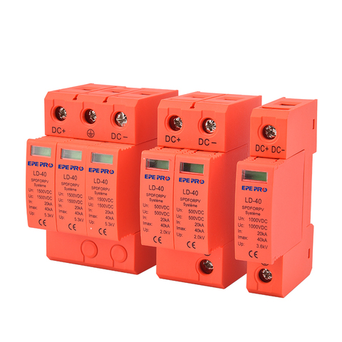 EPEPRO 1000v 2p 20ka Orange Protection solaire systèmes solaires de surtension Dc Parafoudre 40ka Imax 2p Dispositif de protection contre les surtensions Spd